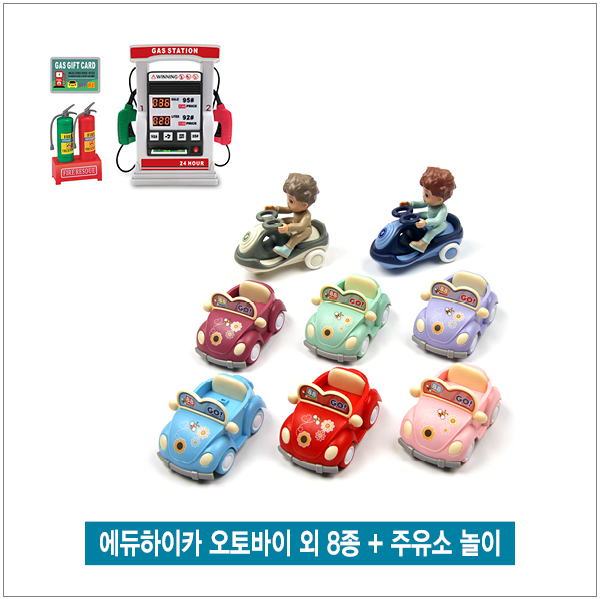 에듀하이카 오토바이 외 8종+주유소 놀이